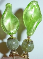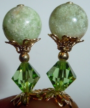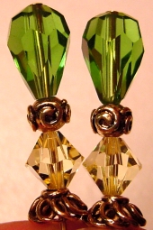 Sleek Serpentine This pair is created of Serpintine top beads and crystal base beads in lemon AB. Gold findings complete the design. Price: $23.00 on straight sticks, see pricing guide when topper is put on Ketylo sticks
