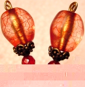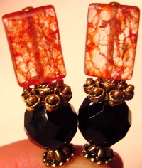 Venicia Beautiful matte Italian beads create an interesting crackled look, while genuine, faceted Carnelian beads sit below. Antiqued brass accents complete the pair. Price: $23.00 on straight sticks, see pricing guide when topper is put on Ketylo sticks.