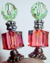Miami Dade These sticks are made up of gorgeous Swarovski crystals in Rose and Pacific Opal. Sterling bead divides the crystals. Silver accents complete the pair. Sterling Silver earrings designed to match are also available for $15 with stick purchase or $20 alone. Price per pair: $23.00 on straight sticks, see pricing guide when topper is put on Ketylo sticks.
