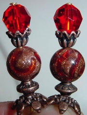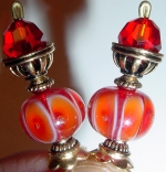 Flame These sticks are made up of gorgeous gold foil, twisting Venetian beads in red. They look like they are on fire! Swarovski crystals rest at bottom. Gold accents complete this pair! Price per pair: $31.00 on straight sticks, $41.00 when topper is put on Ketylo sticks.