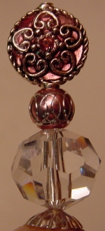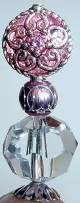 Shown without flash on left, with flash on right Touch of Pink Beautifully detailed beads really set off this single design! At the base is a sparkling, faceted German crystal! Above it sits a mirror cut bead in pink. At the top sits and ornately designed bead with a rose Swarovski bead in the center. Silver plated bead caps complete the stick . Price: $12.50 on straight sticks, see pricing guide when topper is put on Ketylo sticks.