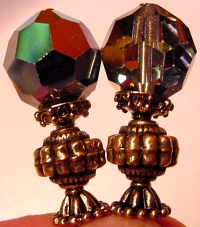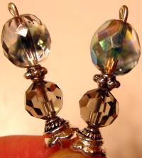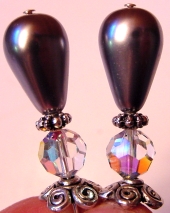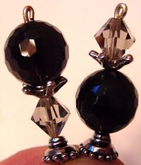 Smoky Diamonds This is a lovely combination of Swarovski crystal and color infused Czech glass!! The color infused Smoke AB beads sit above Black diamond Swarovski, making this pair truly a neutral lover's delight! Silver accents complete the pair. Price: $23.00 on straight sticks, see pricing guide when topper is put on Ketylo sticks.