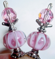 Crowned Pink These sticks are made up of gorgeous lampwork and Swarovski crystals in rose. Slight orange tone on one facet is simply a reflection of light. Silver accents complete the pair. Price per pair: $23.00 on straight sticks, see pricing guide when topper is put on Ketylo sticks.