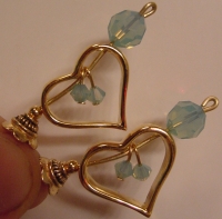 Dangling Hearts These sticks are made up of very popular, Pacific Opal Swarovski in rounds and smaller, dangling bicones. Combined with open hearts, this pair will certainly steal yours! Gold accents complete the pair. Matching earrings are also offered for sale for an additional $10 when purchasing sticks or $15 alone. Price per pair: $23.00 on straight sticks, see pricing guide when topper is put on Ketylo sticks.