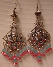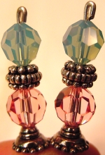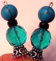Jet Stream This pair is created of Swarovski bicone crystals in Aqua, and large turquoise rounds. Accented with antiqued silver findings. Price: $24.00 on straight sticks, see pricing guide when topper is put on Ketylo sticks.