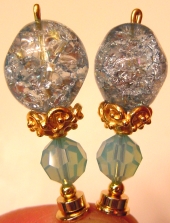 Awed This pair created of crackle glass beads and Swarovski crystal bicones in light amethyst will simply leave you in "awe". Accented with ornate gold findings. Price: $23.00 on straight sticks, see pricing guide when topper is put on Ketylo sticks.