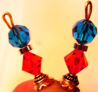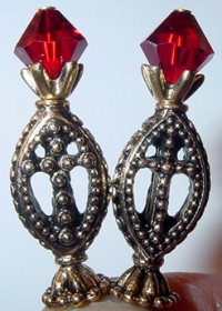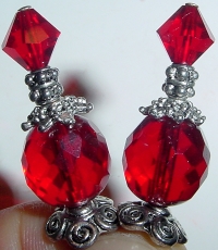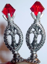 Radiantly Red These sticks are made up of Siam Swarovski bicones and faceted Czech glass rounds also in Siam. Accented with beautiful, silver accents. Price per pair: $23.00 on straight sticks, see pricing guide when topper is put on Ketylo sticks.