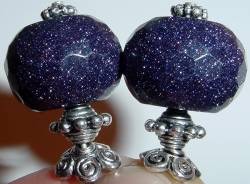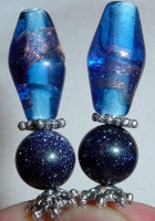 Star Bright These sticks are made up of cobalt blue oblong beads with beautifully swirling bits of glimmery copper. Bottom beads are genuine bluestone that just glimmer in the light. Silver accents complete the pair. Price per pair: $24.00 on straight sticks, see pricing guide when topper is put on Ketylo sticks.