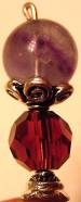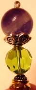 Grape and Lime Genuine Fluorite, an intriguing gem sits atop this lovely stick topper! Fluorite ranges in color from darkest purple to nearly clear. This bead is a darker purple with lighter stripes running through at an angle. Celestial Crystal (Similar in quality to Swarovski) in peridot along with silver accents complete the topper. Price: $10.00 on straight sticks, see pricing guide when topper is put on Ketylo sticks.