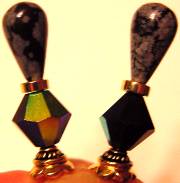 Snow at Dawn Created of genuine Celestial Crystal (Similar in quality to Swarovski) in Jet AB, and genuine Snowflake Obsidian! Beautiful... like snowflakes at dawn! Gold accents. Price: $23.00 on straight sticks, see pricing guide when topper is put on Ketylo sticks.