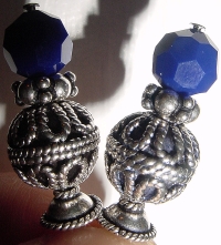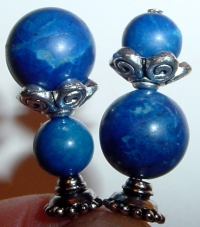 True Blue These beads were sold to me by a vendor as being Lapis Lazuli. I am not an expert with Lapis, so I can't be positive this is so. I can be positive that these are incredible beads! They are simply beautiful! Combined here with silver accents in reverse style. They can be matched or secured as shown. Matching earrings available on request. Price per pair: $23.00 on straight sticks, see pricing guide when topper is put on Ketylo sticks.