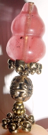 Rosebud Quartz This is a one of a kind single. This topper is made up of Cherry Quartz and antiqued gold accents, as well as a die cast pewter bead. Price: $12.00 on straight sticks, see pricing guide when topper is put on Ketylo stick.