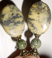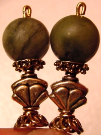 Turqintine The name says it all... well, it does if you know that this pair is made up of Yellow turquoise and Serpentine beads! Antique brass accents complete the pair. Price per pair: $23.00 on straight sticks, see pricing guide when topper is put on Ketylo sticks.