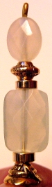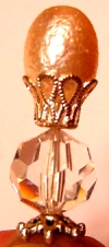 Faberge' Natural Crystal Quartz in a beautiful faceted round rests beneath this oval glass pearl. Silver accents complete the design. One single only: $12.00 on straight sticks, see pricing guide when topper is put on Ketylo sticks.
