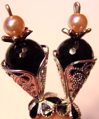 Zebra Girl Black Onyx beads combine with a walk from the wild side... Zebra beads!! Both fun and classic looking this design can go from casual to dressed up, simply but what else you wear! Silver accents complete the pair, but gold may be substituted identically. Price: $23.00 on straight sticks, see pricing guide when topper is put on Ketylo sticks.