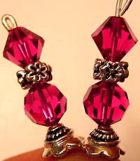 Fun Fuchsia This is a double dose of Swarovski crystal! Fabulous Fuchsia in bicones and rounds make this pair a beautiful, brilliant choice. Silver floral ring accents complete the pair. Price: $22.00 on straight sticks, see pricing guide when topper is put on Ketylo sticks.