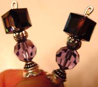 Violet Visions This is a double dose of Swarovski crystal! Beautiful Crystal Helio ( a fabulous finish that creates a dark rainbow color!) cubes sit above these brilliant Tanzanite rounds! Silver Accents. Note: Tanzanite is a brighter purple color than this picture shows. It's really lovely! Price: $23.00 on straight sticks, see pricing guide when topper is put on Ketylo sticks.