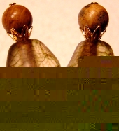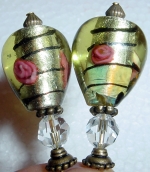 Golden Rose These sticks are made up of large, foil, tear shaped beads in gold with deep salmon roses and brown stripe accent. Swarovski beads in crystal rest at bottom and make the colors just pop! It's not noticeable on the photograph though. It's so hard to get a great picture of the color "crystal". Accented with beautiful, antiqued brass findings. Price per pair: $25.00 on straight sticks, see pricing guide when topper is put on Ketylo sticks.