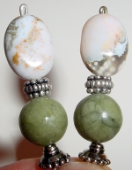 The Old Pear Tree Beautiful matte Italian beads create an interesting crackled look, while Picture Jasper rounds sit above. Gold plated accents complete the pair. Price: $23.00 on straight sticks, see pricing guide when topper is put on Ketylo sticks.