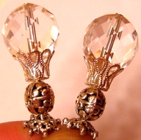 Celia Sue This pair is named after two Loom visitors with stunning silver hair! Made up of glass pearl tear drops in silver and Swarovski crystals in Crystal AB, this pair is imply stunning! Bali styled silver accents rest between the two beads. Additional silver caps at end. Price per pair: $23.00 on straight sticks, see pricing guide when topper is put on Ketylo sticks.ee