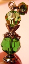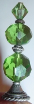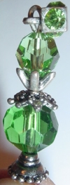 Tiers of Green Celestial Crystal beads combine with Swarovski Crystal in matching Peridot. Three beads, two shapes, one color! Silver accents complete the design. Single Price: $13.00 on straight sticks, see pricing guide when topper is put on Ketylo sticks.