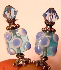 Poppin' Up Fun Aquamarine Swarovski crystal beads sit above cute lampwork styled cubes! Silver accents complete the toppers. Price: $23.00 on straight sticks, see pricing guide when topper is put on Ketylo sticks.
