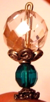 Touch of Teal Natural Crystal Quartz in a beautiful faceted round rests a top a dark teal Czech glass bead. Silver accents complete the design. One single only: $12.00 on straight sticks, see pricing guide when topper is put on Ketylo sticks.