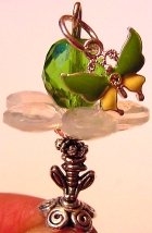 Blushing Lime These sticks are made up of gorgeous silver foil, twisting Venetian beads in light green and light purple. Celestial crystal beads in lime are at bottom. Antiqued gold accents complete the pair. This topper looks amazing on Purpleheart Ketylo's, as shown in a custom pair made for a relative of mine! Price per pair: $30.00 on straight sticks, $42.00 when topper is put on Ketylo sticks