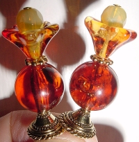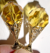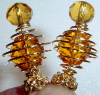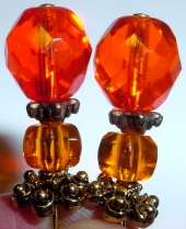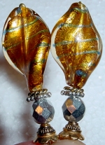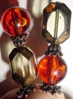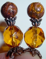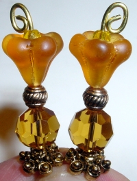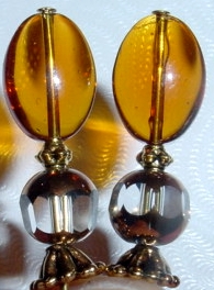 Classic Amber This pair is made up of Amber Czech glass top beads and antique-glazed, crystal, Czech glass bottom beads. Antiqued gold finding complete the design. Price: $23.00 on straight sticks, see pricing guide when topper is put on Ketylo sticks