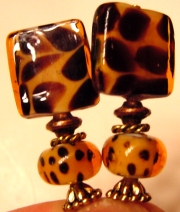 WildCat Dancer Meow! These sticks are made up of lampwork glass beads in wildcat spots, with rectangular beads in a larger, but similar print! Accented with gold and copper findings. This pair is named after one of our Loom members who cares for injured, exotic animals! Price per pair: $22.00 on straight sticks, see pricing guide when topper is put on Ketylo sticks.