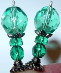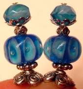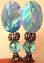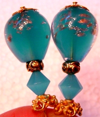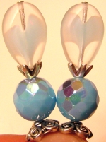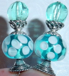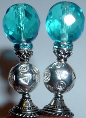 Skylight This pair is made up of Aqua Czech glass top beads, aqua crystal bands, silver plated bottom beads. Silver finding complete the design. Price: $23.00 on straight sticks, see pricing guide when topper is put on Ketylo sticks.