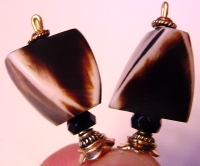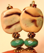 Safari This is an unusual pair. They are made up of bone beads in a triangular cube shape. Czech glass rondelle beads sit at bottom. Gold accents complete the pair. Price per pair: $19.00 on straight sticks, see pricing guide when topper is put on Ketylo sticks.