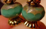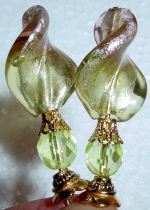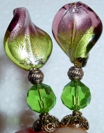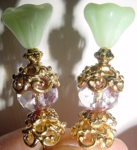 Touch of Victorian Tulips This pair is made up of a milkglass green tulip top beads and light amethyst Czech glass rondelle beads at base. Gleaming, ornate golden accents complete the design. Price: $24.00 on straight sticks, see pricing guide when topper is put on Ketylo sticks.