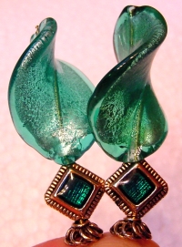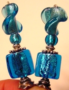 Tropical Waters These sticks are made up of gorgeous silver foil, twisting Venetian beads in light green and light teal. Czech glass beads in teal are at bottom. Silver accents complete the pair. Price per pair: $30.00 on straight sticks, $42.00 when topper is put on Ketylo sticks.