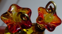 Fire Opal Tulips This pair is made up of a transparent, fire opal tulip top beads which hold medium sized, opaque, golden yellow Czech glass beads. Vintage acrylic crackle beads in burnt Hyacinth rest at base. This pair is actually my favorite of the tulips, but sadly photographed the worst. If you would like additional pictures, please let me know! Antiqued gold accents complete the design. Price: $25.00 on straight sticks, see pricing guide when topper is put on Ketylo sticks.
