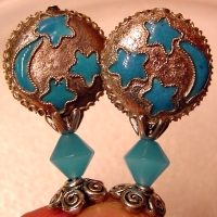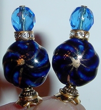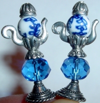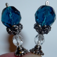 Moonlight Serenade This pair is made up of Czech glass beads in Capri Blue on top and crystal on bottom. Antiqued silver finding complete the design. Price: $23.00 on straight sticks, see pricing guide when topper is put on Ketylo sticks