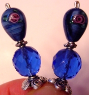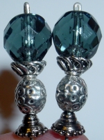 Silvery Montana This pair is made up of Montana Blue Czech glass top beads, with die cast pewter bottom beads. Silver finding complete the design. Price: $23.00 on straight sticks, see pricing guide when topper is put on Ketylo sticks.