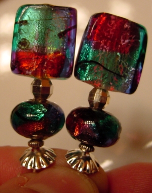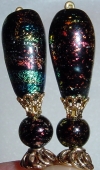 Midnight Lights Highly popular, these Diachronic glass beads create a beautiful topper. Black background color is illuminated with bursts of reds, greens and golds! Gold accents complete the set. Price per pair: $25.00 on straight sticks, see pricing guide when topper is put on Ketylo sticks.