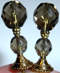 Smokescreen This design consists of matching Czech glass beads in smoke. Gold finding complete the design. A very neutral pair! Price: $23.00 on straight sticks, see pricing guide when topper is put on Ketylo sticks.