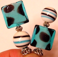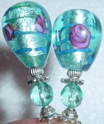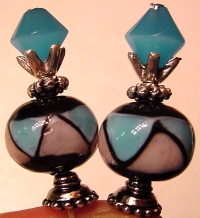 Ocean Bubbles This pair created of vintage acrylic top beads and lampwork bottom beads. Antiqued silver finding complete the design. Price: $23.00 on straight sticks, see pricing guide when topper is put on Ketylo sticks