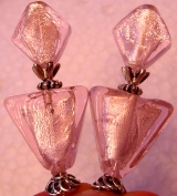 Brooklyn These sticks are made up of gorgeous silver foil, twisting Venetian beads in light pink. Milk glass bicone beads in baby pink are at bottom. Gold accents complete the pair. Identical silver accents available by request! Price per pair: $30.00 on straight sticks, $42.00 when topper is put on Ketylo sticks.