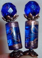 Cool Streams These sticks are made up of cobalt blue tube beads accented with glimmering copper. Czech glass faceted beads at top match in color. Copper accents complete this pair! They remind me of blue glass my Aunt S likes to collect. Price per pair: $23.00 on straight sticks, see pricing guide when topper is put on Ketylo sticks.
