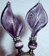 Grape Frost These sticks are made up of gorgeous silver foil, twisting Venetian beads in purple. Cat eye beads in purple are at bottom. Silver accents complete the pair. Price per pair: $30.00 on straight sticks, $40.00 when topper is put on Ketylo sticks.