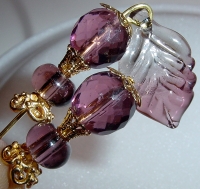 Iced Amethyst Beautifully detailed with leaf dangle, these amethyst beads, both faceted and smooth, combine delightfully! Ornate gold accents complete the set. Price per pair: $24.00 on straight sticks, see pricing guide when topper is put on Ketylo sticks.