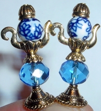 I'm a Little Teapot (gold on left and silver on right)) Die cast teapot findings beautifully frame the pained rounds and Czech glass rondelle! Silver or gold accents complete the pair. Price per pair: $23.00 on straight sticks, see pricing guide when topper is put on Ketylo sticks.